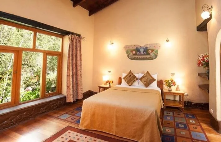 Spacious Luxury Room with stunning mountain and garden views. Crafted from natural earth materials, featuring local Andean artwork and Feng Shui design, each room reflects the colors and textures of the Andes. With 1 King or 2 queens, these rooms have an optional set up to accommodate 2 travelers perfect for friends or fellow yogis looking to share a space together.